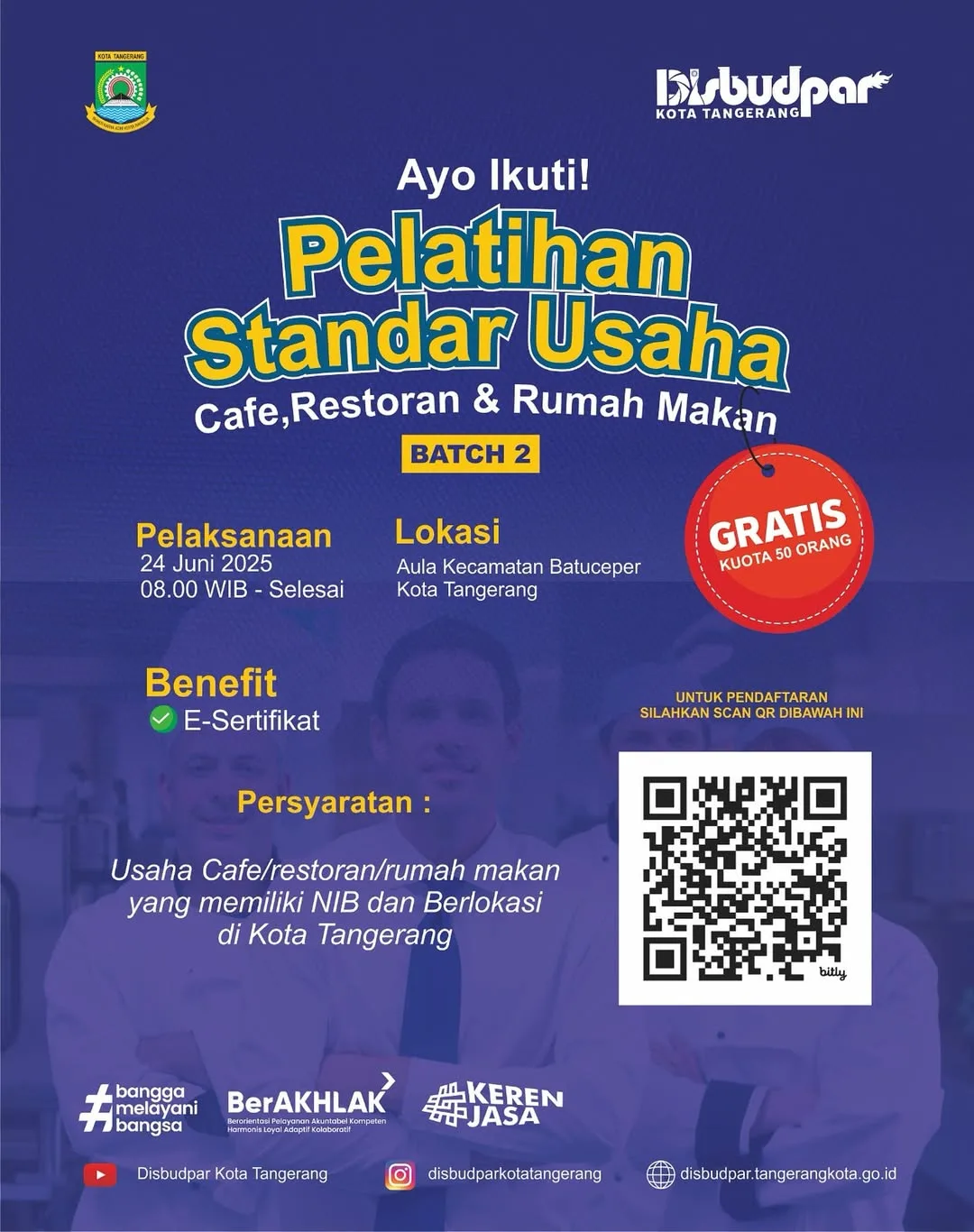 Pelatihan ini dibuka untuk para pelaku usaha kuliner di Kota Tangerang dan sekitarnya, baik yang baru memulai maupun yang sudah berjalan namun ingin meningkatkan standar layanan dan operasional bisnisnya.