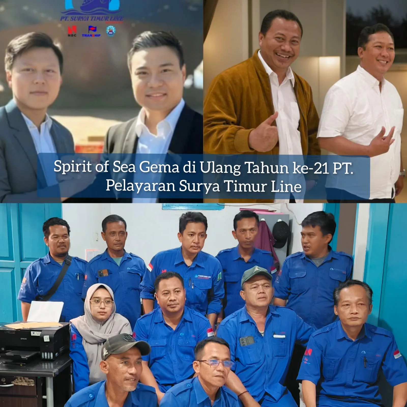 “Kami segenap karyawan dan karyawati beserta crew PT. Pelayaran Surya Timur Line Grup Cabang Merak mengucapkan: SELAMAT ULANG TAHUN PT. PELAYARAN SURYA TIMUR LINE YANG KE-21. Semoga PT. Pelayaran Surya Timur Line semakin tumbuh dan berkembang menjadi perusahaan penyeberangan terbesar di Indonesia. SPIRIT OF SEA!”